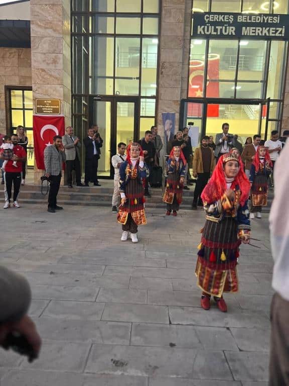 Kutlamalar, Çerkeş Belediyesi Kültür Merkezi’nde devam etti. Burada sahne alan Çerkeş Halk Eğitimi Merkezi Halk Oyunları Ekibi ve Çankırı Yaren Ekibi sergiledikleri gösterilerle izleyicilerden büyük alkış aldı. Ardından açılış konuşmaları yapıldı ve davetlilere Çerkeş Belediyesi tarafından yemek ikramında bulunuldu.
